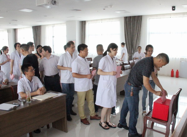 根據(jù)衛(wèi)計(jì)委黨委安排,7月8日,我院召開黨員大會(huì),選舉產(chǎn)生新一屆支部委員,衛(wèi)計(jì)委黨委副書記韓仕義到會(huì)指導(dǎo),我院黨支部書記周永富及全院在職黨員、離退休黨員共四十人參加。會(huì)議由副院長蔡明燕主持。