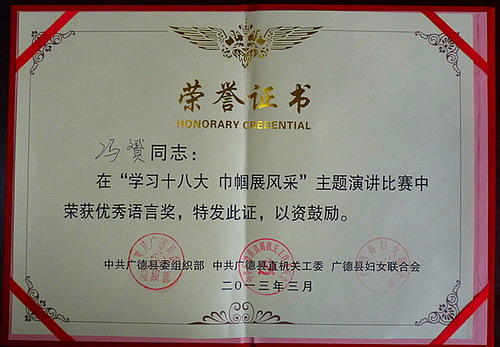 我院馮赟獲演講比賽“優(yōu)秀語言獎(jiǎng)”