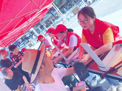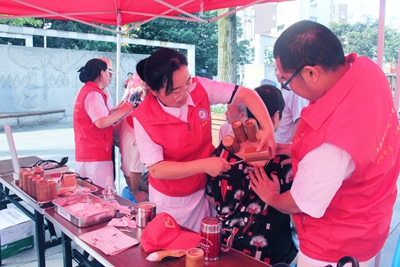 在義診現(xiàn)場,醫(yī)院安排了內(nèi)科、外科和中醫(yī)專家在夫子廟廣場,現(xiàn)場接受群眾健康咨詢,開展了測血壓、測血糖、心肺聽診等常規(guī)健康體檢及刮痧、“三伏貼”等中醫(yī)中藥體驗活動,向群眾發(fā)放清涼油、人丹等防暑藥物及“公民健康素養(yǎng)66條”、常見疾病預(yù)防等宣傳圖冊。
