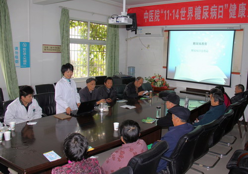 2015年11月14日是第九個(gè)聯(lián)合國(guó)糖尿病日,縣中醫(yī)院舉辦了糖尿病知識(shí)專題講座。由醫(yī)院內(nèi)分泌科主治醫(yī)師劉啟秀擔(dān)任主講,針對(duì)糖尿病病因、預(yù)防、治療等方面做了全面而生動(dòng)地講解;顒(dòng)現(xiàn)場(chǎng)有許多糖尿病患者及家屬前來,劉醫(yī)生針對(duì)現(xiàn)場(chǎng)聽眾提出的問題進(jìn)行耐心解答,獲得了大家一致的贊賞;顒(dòng)中,中醫(yī)院還為前來聽講人員發(fā)放糖尿病健康知識(shí)手冊(cè)并免費(fèi)監(jiān)測(cè)血糖。