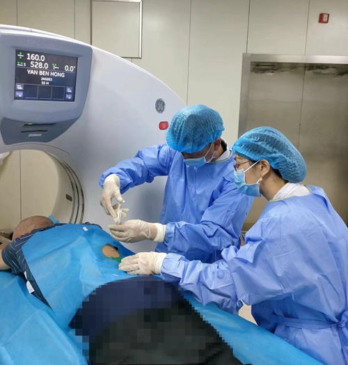CT引導(dǎo)下穿刺活檢術(shù),是在CT引導(dǎo)下局麻下用穿刺活檢槍取出少量組織進(jìn)行病理學(xué)分析,從而明確腫塊病理分型,以便制定及調(diào)整治療方案。該治療技術(shù)具有操作安全、定位準(zhǔn)確,創(chuàng)口微小等優(yōu)點。