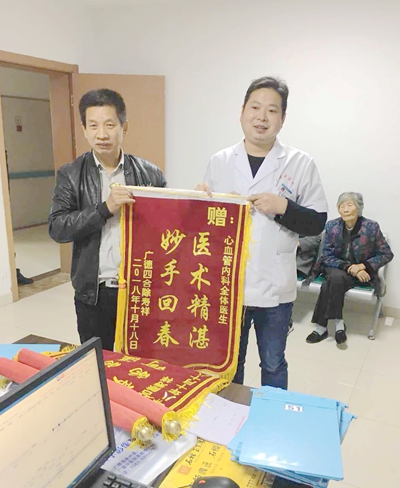 據(jù)了解,徐壽祥的父親徐大爺,家住四合鄉(xiāng),今年78歲,于今年6月12日在銀行取錢時突發(fā)意識不清,由120緊急送至我院就診,查出是右側丘腦腦出血,病情兇險,先后在我院重癥醫(yī)學科、心內(nèi)科接受過治療,現(xiàn)已好轉出院回家休養(yǎng)。其兒子徐壽祥說:“我父親以前就有高血壓病病史,之前也有過一次中風病史,后來雖然好轉了,回家也一直在吃降壓藥,但老爺子就嗜好點小酒,怎么勸也不愿戒,所以血壓一直控制的不是很好,這不,一下就又中風了,差點命都沒了,還好在重癥醫(yī)學科程主任醫(yī)護團隊盡心竭力的搶救治療和心內(nèi)科醫(yī)師及護士們的悉心照料下,我父親才能再次獲得一次新生,讓我又能好好的盡盡孝心了,真的很感謝他們,他們真是醫(yī)德高尚、救死扶傷的白衣天使。”在對徐大爺治療情況深入了解后發(fā)現(xiàn),徐大爺在住院治療期間,多次出現(xiàn)過危及生命的情況,在兩科醫(yī)護人員的盡心搶救治療及精心的呵護下,徐大爺最終轉危為安,身體好轉后,10月15日,一家人開開心心的將徐大爺接回家休養(yǎng)。
