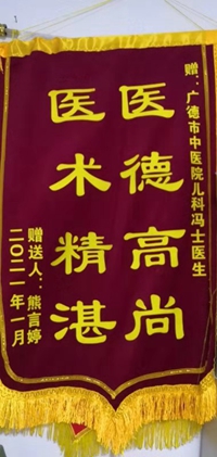 我科的馮士醫(yī)生即是千千萬(wàn)萬(wàn)兒科醫(yī)生的一個(gè)縮影,又是我們當(dāng)中的優(yōu)秀代表。馮醫(yī)生為人熱心卻不失理性,處事決斷而不失謹(jǐn)慎,又兼之好學(xué)善思,且專業(yè)水平過(guò)硬,每每有病患前來(lái)相詢求助,故而常被我科同事調(diào)侃“粉絲眾多”。這次的錦旗亦是為一位對(duì)馮醫(yī)生滿懷感激的小朋友媽媽所贈(zèng)。