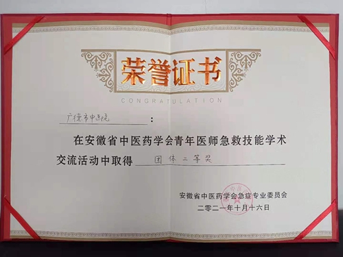 10月16日,由我院楊碩、毛樂平、劉勝組成的參賽隊代表宣城市出征安徽省中醫(yī)藥學(xué)會青年醫(yī)師急救技能學(xué)術(shù)交流活動,經(jīng)過激烈角逐,三名醫(yī)生不負(fù)眾望,在比賽中勇獲“團體二等獎”的好成績,并獲單項獎第一名、第二名、第三名。其中楊碩同志因個人成績突出,被選拔入安徽省參賽隊,將參加第四屆“瑞醫(yī)杯”青年醫(yī)師急救技能全國交流大賽。