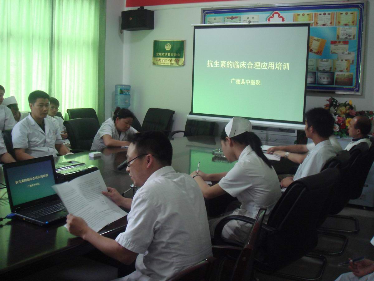 為不斷提高醫(yī)療質(zhì)量,保證合理用藥,縣中醫(yī)院醫(yī)務(wù)科于7月10日舉辦了以“抗生素的合理使用”為題的培訓(xùn)講座,在會(huì)上醫(yī)務(wù)人員還針對(duì)臨床廣泛應(yīng)用的抗生素與抗感染藥物在醫(yī)院使用中的規(guī)范及存在的問題作了深入的探討。(圖為講座現(xiàn)場(chǎng))(陳靈香)