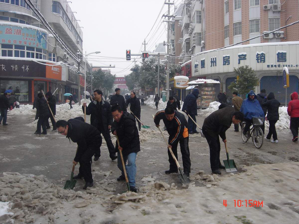 連日來(lái)的大雪和積雪給廣德縣人民出行帶來(lái)很多不便,為保證道路暢通無(wú)阻,廣德縣中醫(yī)院積極組織醫(yī)務(wù)人員義務(wù)上街掃雪。上午10點(diǎn)30分,記者聞?dòng)崄?lái)到廣德縣團(tuán)結(jié)路,只見中醫(yī)院的10多位同志已經(jīng)在這里干得熱火朝天。路上的雪經(jīng)車輛碾壓、夜晚凝結(jié)已經(jīng)變成了堅(jiān)硬的雪冰。他們先用鐵锨將冰一塊塊地撬動(dòng),然后再鏟到路的兩邊堆放……由于天寒地凍,不少人的臉和手都凍紅了,但他們?nèi)徊活,一個(gè)個(gè)干勁十足。其情其景溫暖人心!