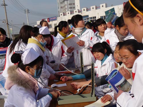 12月4日上午,我院選派了5名醫(yī)務(wù)人員參加了由縣委宣傳部、科技局等聯(lián)合舉辦的“法制宣傳日”活動(dòng);顒(dòng)現(xiàn)場(chǎng),我院義診臺(tái)前人頭攢動(dòng),熱鬧非凡,醫(yī)務(wù)人員一邊熱情接待著咨詢?nèi)罕姡贿叞l(fā)放健康知識(shí)手冊(cè)和預(yù)防感冒的中成藥膠囊。僅僅一上午,我院就接待了義診群眾200余人,發(fā)放各種資料500余份,中成藥50盒,受到了廣大市民的一致好評(píng)。(陳靈香/文、圖)