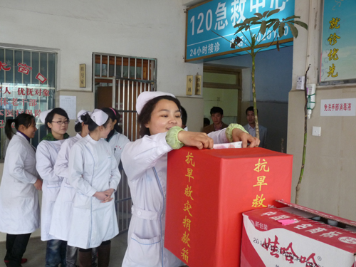 “每人捐獻(xiàn)一瓶水,抗旱救災(zāi)獻(xiàn)愛(ài)心”。4月2日,縣中醫(yī)院團(tuán)委積極響應(yīng)上級(jí)團(tuán)委的號(hào)召,在院內(nèi)舉行了為西南旱區(qū)捐水捐款活動(dòng),這已是該院舉行的第二次大規(guī)模募捐活動(dòng)。(陳靈香/文、圖)