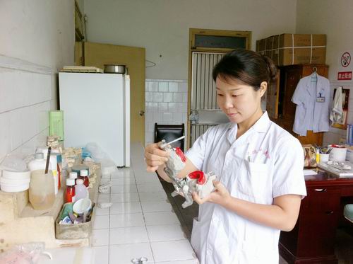 正是因?yàn)檫@樣,在長(zhǎng)達(dá)17年的從醫(yī)經(jīng)歷中,她看的病人盡管已經(jīng)不計(jì)其數(shù),但她始終把每一個(gè)患者當(dāng)成自己的親人。有時(shí)忙得甚至一整天連一口水都顧不上喝,雖然也會(huì)感到疲憊,也會(huì)有身體不適的時(shí)候,可是面對(duì)著那些深受病痛困擾的患者,她只要一坐在工作臺(tái)上,一操起診療儀器,一啟動(dòng)開(kāi)關(guān),就什么都忘記了。銀白色的燈光映照著她的身影,動(dòng)作是那樣的熟練,白色口罩后露出的眼神是那樣的認(rèn)真而專(zhuān)注,一心只想著病人,一心只想著把病痛消除。