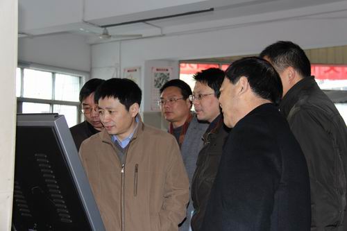 省中管局副局長肖鋒(左前一)查看醫(yī)院查詢系統(tǒng)