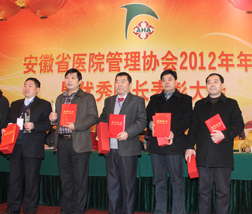 2012年12月27日,安徽省醫(yī)院管理2012年年會(huì)暨全省優(yōu)秀院長(zhǎng)表彰大會(huì)在合肥隆重召開(kāi),來(lái)自全省各衛(wèi)生行政部門(mén)、醫(yī)院院長(zhǎng)及相關(guān)醫(yī)院管理工作者參加了大會(huì)。我院院長(zhǎng)周永富被授予“安徽省優(yōu)秀院長(zhǎng)”稱(chēng)號(hào),并接受了大會(huì)的表彰。