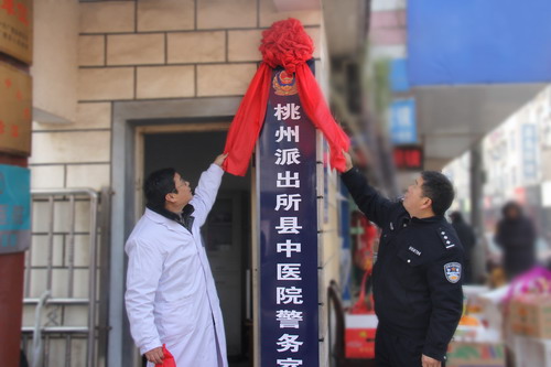 2013年1月9日,“桃州派出所---縣中醫(yī)院警務(wù)室”正式掛牌成立,桃州鎮(zhèn)派出所及我院相關(guān)領(lǐng)導(dǎo)參加了揭牌儀式。警務(wù)室成立后,將進(jìn)一步加強(qiáng)院內(nèi)治安管理,化解處理醫(yī)患糾紛,最大限度地維護(hù)醫(yī)患雙方的合法權(quán)益。(陳希)