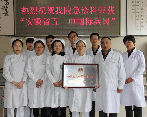 近日,從省總工會(huì)傳來(lái)喜訊,縣中醫(yī)院急診科被授予“安徽省五一巾幗標(biāo)兵崗”稱(chēng)號(hào)。