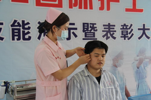 大會(huì)開(kāi)始的第一項(xiàng)議程是中醫(yī)護(hù)理技術(shù)操作演示,那嫻熟的動(dòng)作和規(guī)范而標(biāo)準(zhǔn)的操作流程充分展現(xiàn)了我院白衣天使的風(fēng)采。