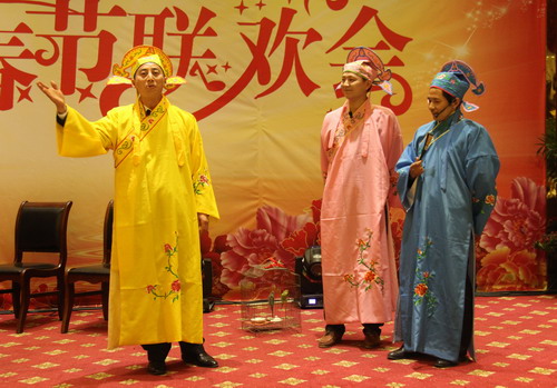 表彰大會結(jié)束后,員工們紛紛獻上自編自演的節(jié)目,現(xiàn)代舞、獨唱、手語表演、太極拳、表演唱各顯身手。小品《新梁山伯與祝英臺》將整個聯(lián)歡會推向高潮,會場載歌載舞,歡聲笑語,彌漫著濃濃的節(jié)日氛圍。(陳希/圖、文)