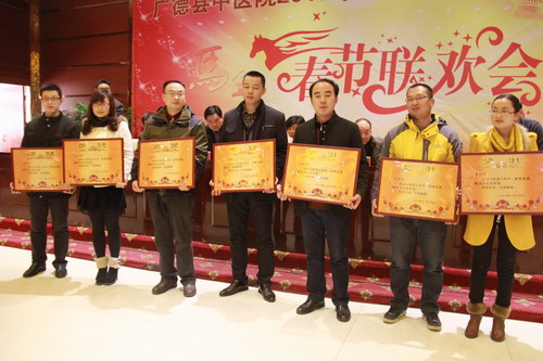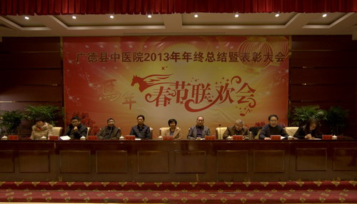 為全面總結(jié)2013年工作,科學(xué)規(guī)劃2014年工作任務(wù)。元月24 日下午, 我院在橫山賓館隆重召開“2013年度總結(jié)表彰大會暨2014年春節(jié)聯(lián)歡會”?h委常委、宣傳部長劉群,縣人大常委會副主任陶崇林,副縣長邱型軍,衛(wèi)生局局長袁順剛,副局長張先明,院長周永富,副院長肖為民、蔡明燕出席了會議,部分干部職工共200余人參加了會議。會議由副院長蔡明燕主持。