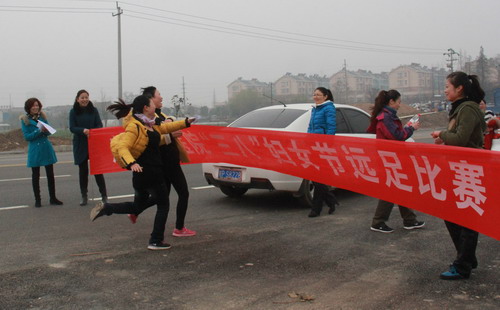 陽春三月,萬物復(fù)蘇。為慶祝“三八”國際勞動(dòng)?jì)D女節(jié),我院婦委會(huì)組織女職工在醫(yī)院新址至開發(fā)區(qū)路段開展了一場(chǎng)別開生面的遠(yuǎn)足比賽。5日上午8:30,50名女職工在醫(yī)院新址集合,隨著遠(yuǎn)足活動(dòng)組織者的一聲哨響,大家立即向著終點(diǎn)奔去。當(dāng)天分別角逐出一等獎(jiǎng)1名,二等獎(jiǎng)3名,三等獎(jiǎng)5名,并現(xiàn)場(chǎng)頒發(fā)了紀(jì)念獎(jiǎng)品。
