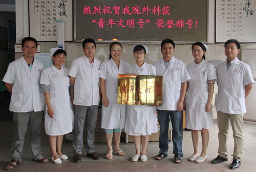 我院外科是一支充滿朝氣、團(tuán)結(jié)向上的醫(yī)療服務(wù)團(tuán)隊(duì)。2012年該科榮獲“安徽省優(yōu)質(zhì)護(hù)理服務(wù)先進(jìn)集體”稱號(hào),該科護(hù)士王媛媛先后獲得2012年“安徽省優(yōu)質(zhì)護(hù)理服務(wù)先進(jìn)個(gè)人”及2013年“全國(guó)優(yōu)質(zhì)護(hù)理服務(wù)先進(jìn)個(gè)人”榮譽(yù)稱號(hào)。全科醫(yī)護(hù)人員以“青春奉獻(xiàn)在崗位,親情服務(wù)創(chuàng)一流”為創(chuàng)建口號(hào),將“愛(ài)崗敬業(yè),救死扶傷”的工作熱情充分發(fā)揮到創(chuàng)建“青年文明號(hào)”活動(dòng)中,在全院青年職工中發(fā)揮了良好的模范帶頭作用。