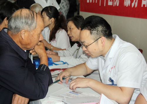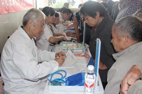 9月19日,我院抽調(diào)內(nèi)科、外科、兒科、中醫(yī)科等各科室專家深入到柏墊鄉(xiāng)、東亭鄉(xiāng)及敬老院開展“服務(wù)百姓健康行動(dòng)”大型義診活動(dòng),為數(shù)百名村民細(xì)心地問診、檢查,廣泛傳播中醫(yī)藥的醫(yī)療衛(wèi)生保健知識(shí)。在東亭鄉(xiāng)敬老院,醫(yī)護(hù)人員為老人們送去了水果及保健品,為老人們測(cè)量血壓、檢查身體健康狀況。