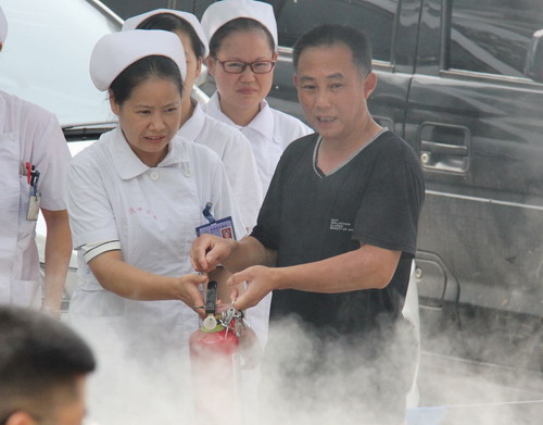 針對醫(yī)院人群密集度大及特殊性的特點,中醫(yī)院積極加強消防安全工作,于8月19日舉行了一次消防演練,模擬大火現(xiàn)場,現(xiàn)場指導(dǎo)大家如何正確使用滅火器材進行滅火。