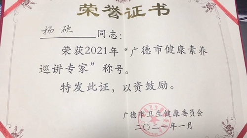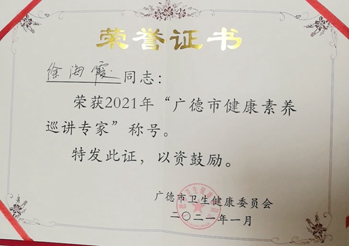我院兩名同志獲廣德市“健康素養(yǎng)巡講專家”榮譽稱號